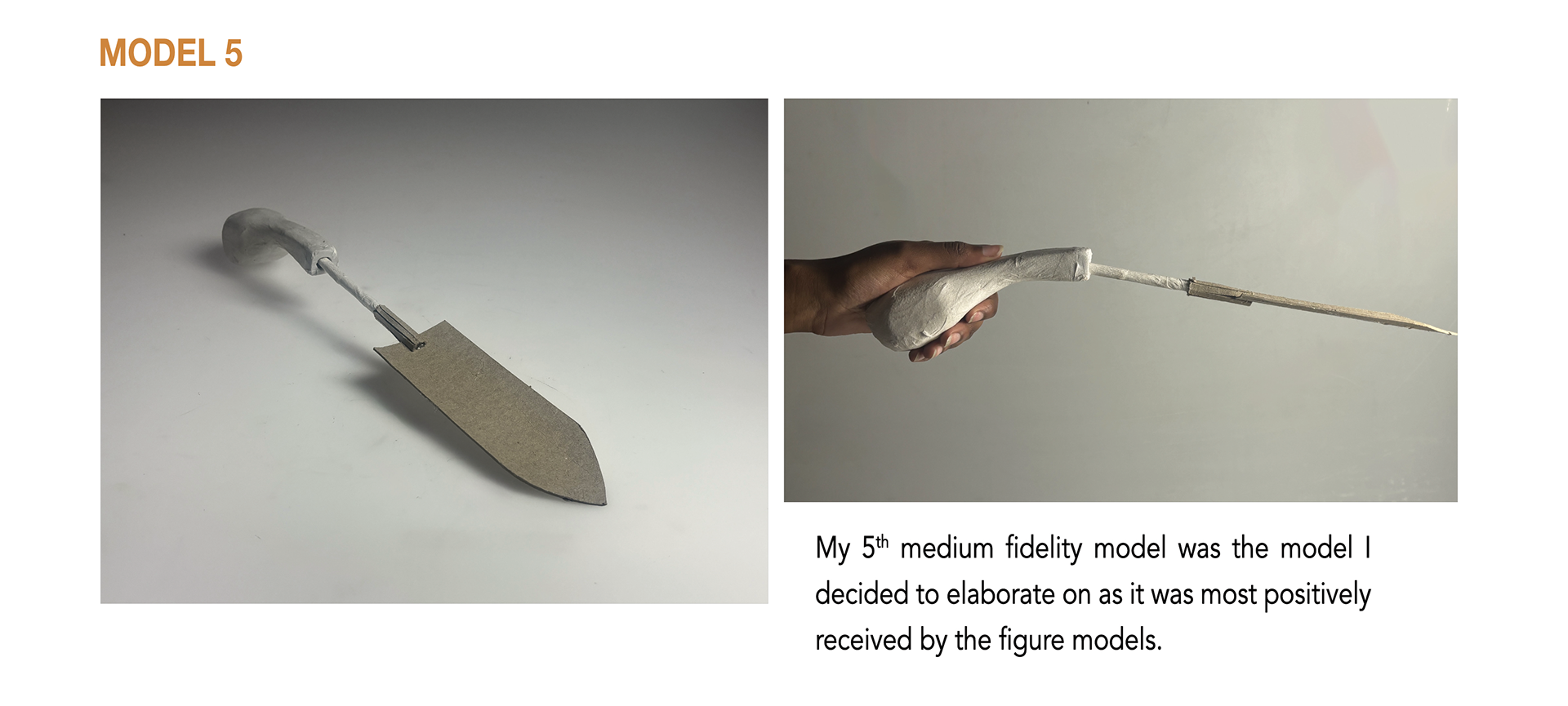 This hand trowel is designed to meet the needs of users with rheumatoid arthritis, prioritizing ease of use, ergonomic handling, and aesthetic appeal to provide an inclusive and comfortable gardening experience.